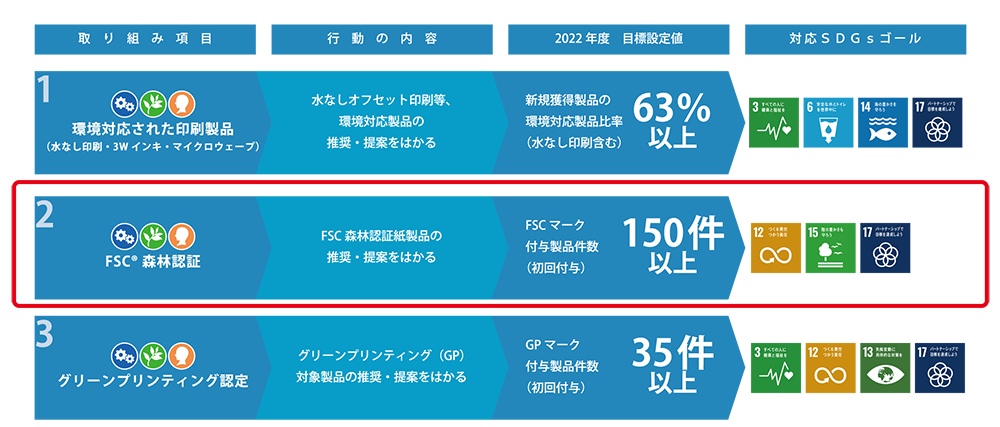 このACTIONは『企業活動のあらゆる場面で環境のため・製品のため・人のための貢献、さらにはお客様のSDGsの達成に寄与するために、精英堂印刷として果たすべきこと、継続すべきことを追求する』ことを定義としている取り組みです。