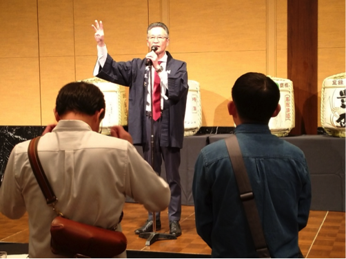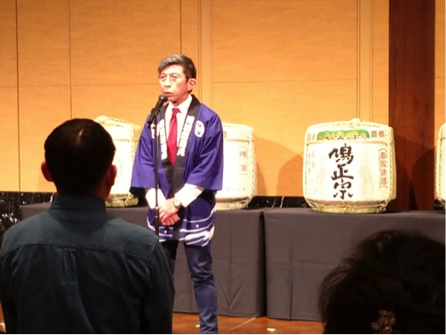 閉会の挨拶をする「鳩正宗株式会社 稲本社長」